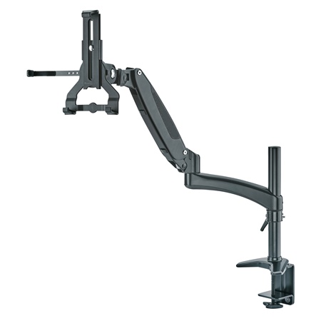 La plage de serrage du support de tablette est comprise entre 158 et 280 mm, permettant une compatibilité avec divers modèles de tablettes. Il est particulièrement adapté aux tablettes équipées d'une housse de protection ou d'un étui jusqu'à 20 mm d'épaisseur. Les mâchoires de serrage superposées avec coussinets en caoutchouc intégrés assurent un maintien sûr tout en éliminant les bruits de vibration indésirables, garantissant ainsi un environnement de travail silencieux.