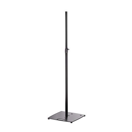 Le Pied de lumière est un support accueillir des luminaires et des enceintes légères. Il est équipé d'une plaque d'acier lourde et plate, offrant une stabilité dans des espaces restreints. Ce modèle permet de positionner la tige d'écartement de trois manières différentes : en position centrée, décentrée ou dans un coin, selon les de l'aménagement. La hauteur est ajustable entre 1 400 mm et 2 400 mm avec des incréments de 200 mm, ce qui permet une flexibilité d'utilisation.
