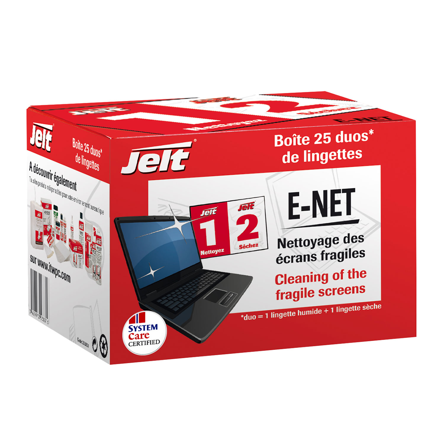 Le Pack de 25 duo de lingettes nettoyantes E-NET de JELT est la solution idéale pour un entretien impeccable de tous vos écrans. Conçu spécifiquement pour les appareils audiovisuels, chaque pack contient 25 duos individuels, garantissant une hygiène parfaite et une efficacité maximale. Chaque sachet se compose d'une lingette humide imprégnée d'une solution nettoyante et d'une lingette sèche en microfibre pour un lustrage sans trace. Ce système duo assure un nettoyage antistatique et anti-empreintes, laissant vos surfaces claires et éclatantes.