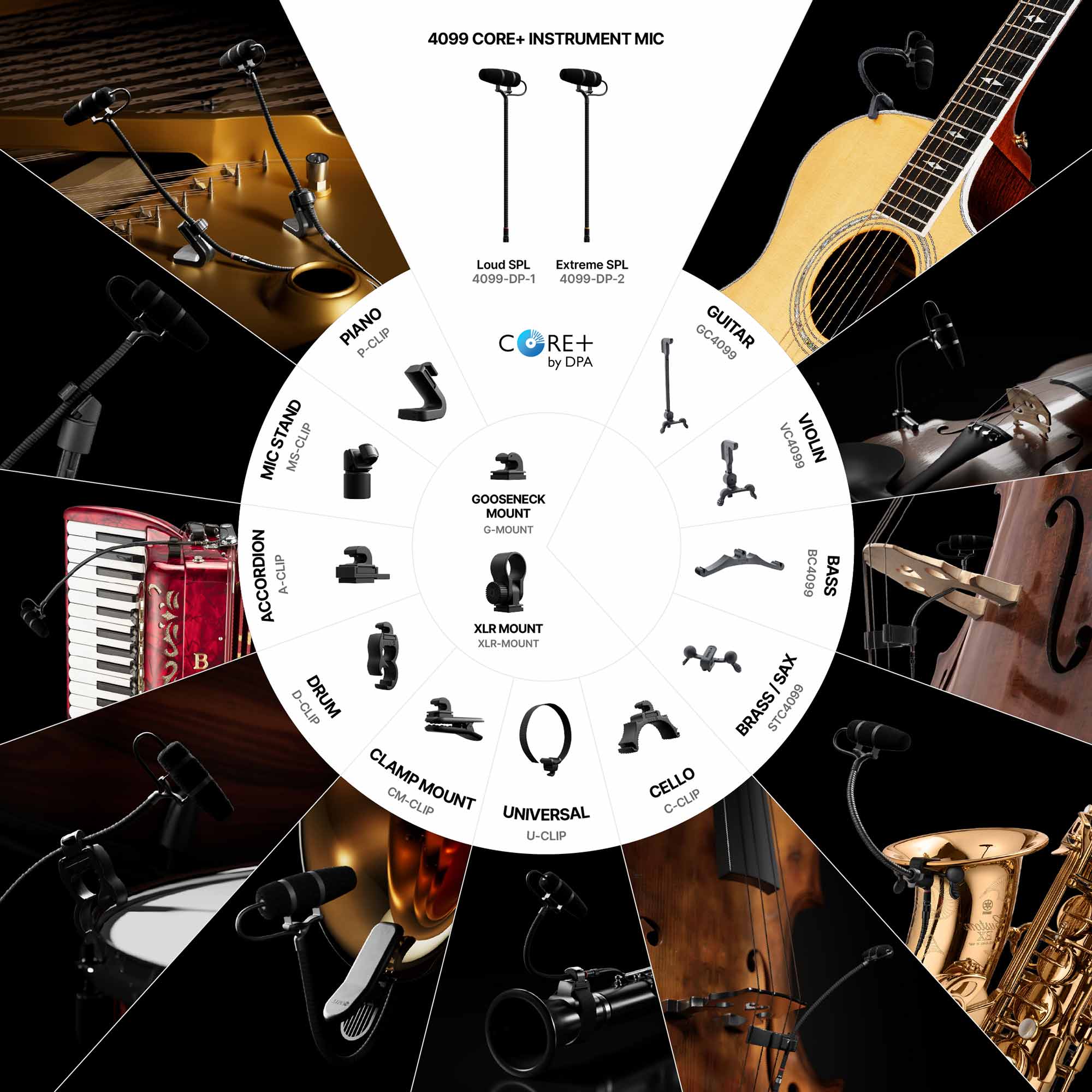 Certifié IP58 Réponse en fréquence : 20Hz - 20kHz, effective 80Hz - 17kHz + boost de 10kHz à 12kHz. Sensibilité : 2mV/Pa. Max SPL : 155dB peak. Connecteur MicroLock, câble 1,6mm. Livré avec DAD9099 48V et étui.