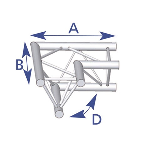 Son architecture triangulaire intègre des tubes principaux de 50 mm et des renforts diagonaux de 16 mm, assurant une stabilité élevée et une durabilité optimale lors des montages complexes ou en suspension. Grâce à son format compact et sa finition noire, il s’intègre discrètement dans les environnements professionnels comme les plateaux TV, les concerts ou les salons événementiels.