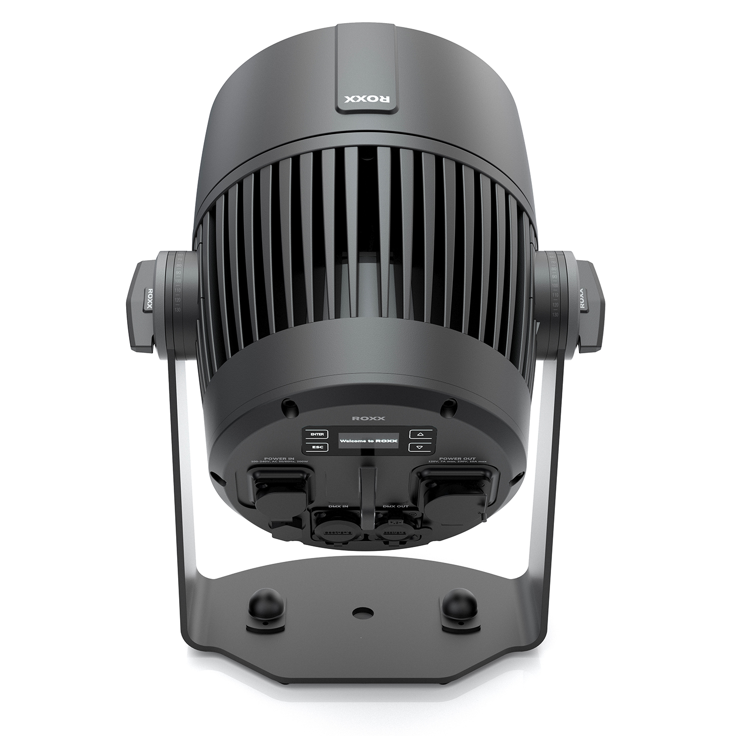 Lentilles et accessoires optionnels Flux lumineux continu : 9219 lumens. Contrôle : DMX, RDM, CRMX intégré. Connecteurs IP65 True one et DMX 5 pts. Lyre avec trou M12 + quick lock omega (optionnel). Accroche pour suspension incluse.