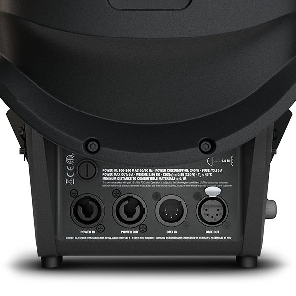 IRC > 90 - DMX In/Out 5 points Température : 1800 à 8000K - 6500lm - Livré avec Coupe-flux à 8 volets, porte filtre et cordon d'alimentation powerCON