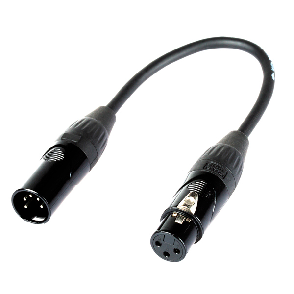 XLR 3 points mâle - XLR 5 points femelle - Exemple d'utilisation : Sortie/Out d'un pupitre/console DMX 3p --> Cordon DMX 5p ou Cordon DMX 3p --> Entrée/In gradateur 5p