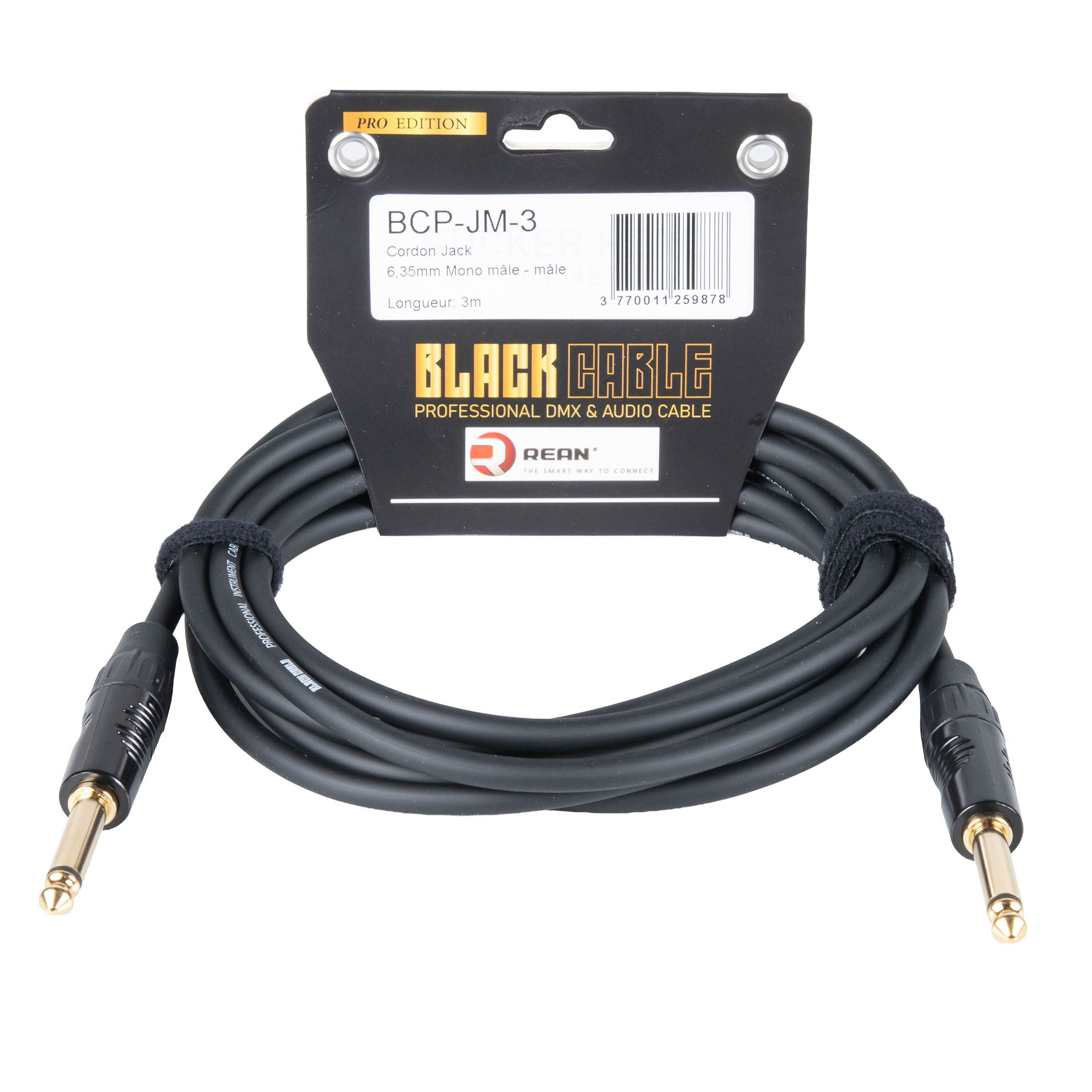 Le cordon Jack 6.35 mâle-mâle Mono Premium de BLACKCABLE est des connexions audio de haute qualité. Avec une longueur de 3 mètres, ce câble est pour relier des instruments, des amplificateurs ou des équipements audio professionnels. Sa construction et ses connecteurs plaqués or garantissent une conductivité optimale et une résistance à la corrosion, assurant ainsi une transmission du signal sans perte.