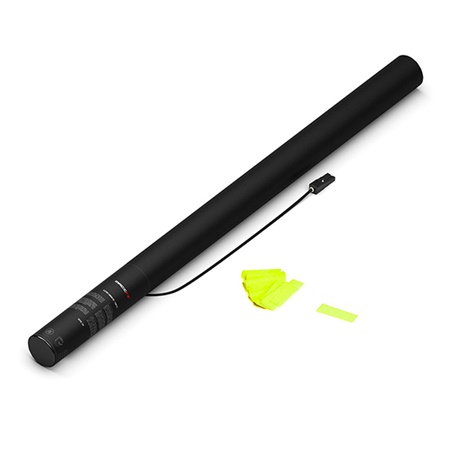 Le Canon à confettis est un dispositif projeter des confettis à l'aide d'un système électrique. Ce modèle mesure 80 cm de long et utilise une technologie de propulsion par air comprimé. Il est compatible avec des confettis en papier ou en plastique, répondant ainsi à des normes de sécurité spécifiques. Le canon est alimenté par une batterie rechargeable, ce qui permet une utilisation sans fil, facilitant la manipulation et le transport lors d'événements. Son interface utilisateur est dotée d'un bouton de déclenchement, qui active le mécanisme de lancement à distance.
