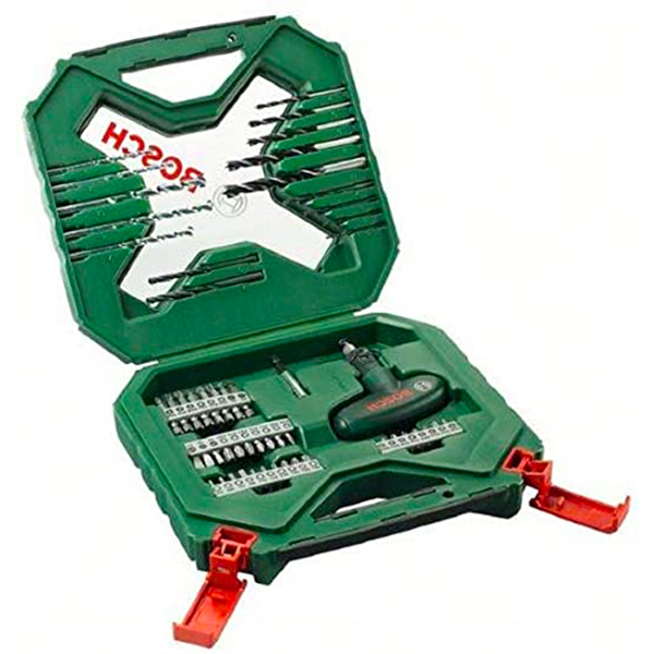 Le Coffret X est un ensemble d'outils le perçage et le vissage, comprenant 54 pièces. Ce coffret inclut des forets en acier rapide, des embouts de vissage, et divers accessoires compatibles avec les perceuses à percussion. Les forets respectent les normes EN 61326, assurant ainsi un niveau de sécurité élevé lors de l'utilisation. Les embouts sont fabriqués à partir d'acier S2, offrant une résistance accrue à l'usure.