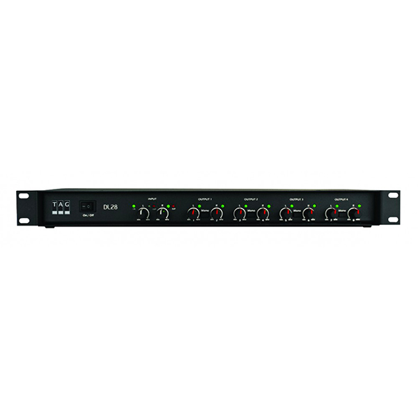 Le DL-28 est un distributeur de signaux professionnel, permettant à partir de 2 entrées stéréo de contrôler 4 zones stéréo ou 8 mono. Toutes les entrées et les sorties sont symétriques, avec des contacts or et des circuits très faibles bruits.