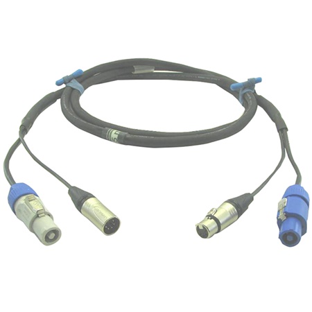 Le Cordon hybride Power est le transport de signaux numériques et d'alimentation électrique. Ce câble combine une interface DMX 512 pour le contrôle des lumières avec une alimentation via un connecteur powerCON 20A. Le câble mesure 3 mètres de long, ce qui le rend adapté pour des installations variées. La conception permet de réduire les interférences électromagnétiques, garantissant ainsi un signal stable.