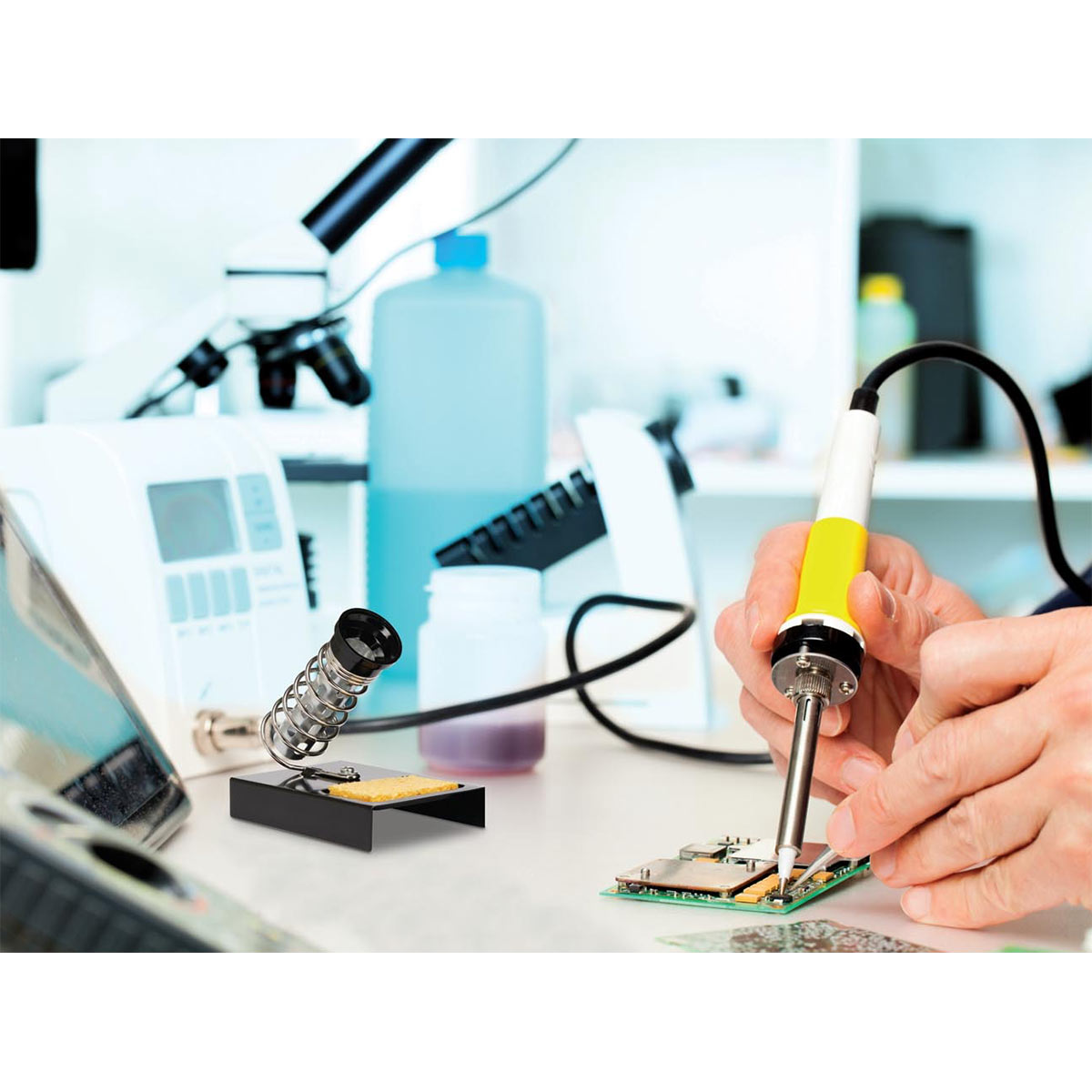 Ce support est parfaitement adapté pour les passionnés d'électronique réalisant des montages, ainsi que pour les ateliers de réparation professionnels nécessitant une station de travail ordonnée et sécurisée. Il est également indispensable pour les projets DIY et de prototypage rapide, garantissant que le fer à souder est toujours à portée de main, sans risque de brûlure ou de dommage matériel. Sa robustesse le rend idéal pour les centres de formation technique où la sécurité est primordiale, et il excelle dans la maintenance de cartes électroniques délicates, offrant un repos stable et fiable entre chaque soudure.