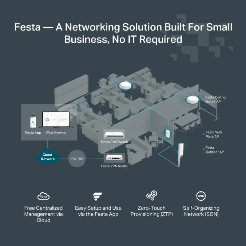 Le Festa FR205 est un routeur VPN gigabit pensé pour les petites entreprises, les bureaux à domicile (SOHO), les cafés, les commerces et les utilisateurs avancés. Il combine performance, sécurité et simplicité de gestion via le cloud pour offrir une solution réseau moderne, fiable et flexible.