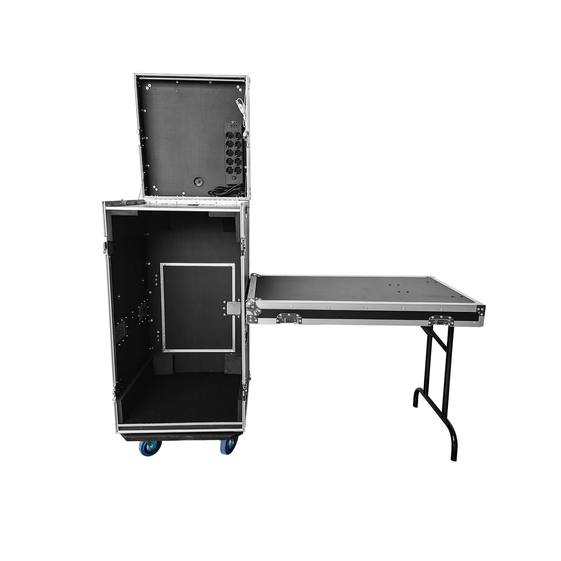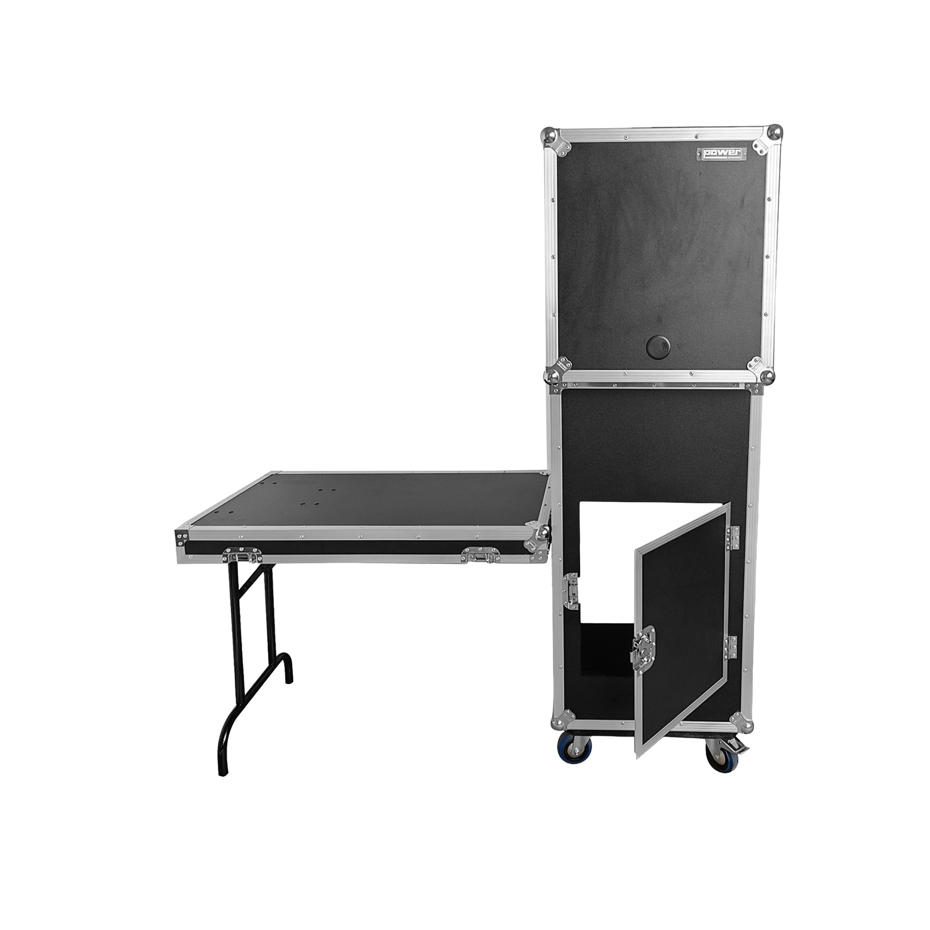 Le Power Acoustics FT FRIDGE CASE est un flight case pour réfrigérateur conçu pour le transport sécurisé et l’installation mobile d’un frigo jusqu’à 86 cm. Sa structure en multiplis 9 mm, ses coins métal renforcés, ses cornières aluminium et ses fermetures papillon assurent une protection robuste en environnement intensif. Il intègre une multiprise 8 entrées, un éclairage LED intégré au capot et une face avant transformable en table, avec une surface de travail 969 x 500 mm et une trappe 500 x 400 mm. Les poignées rabattables et les 4 roulettes pivotantes dont 2 avec frein facilitent la mobilité et la mise en place rapide.
