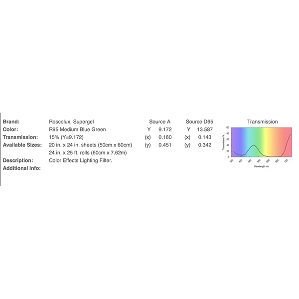 Filtre gélatine ROSCO Supergel 95 effet Medium Blue Green - Feuille