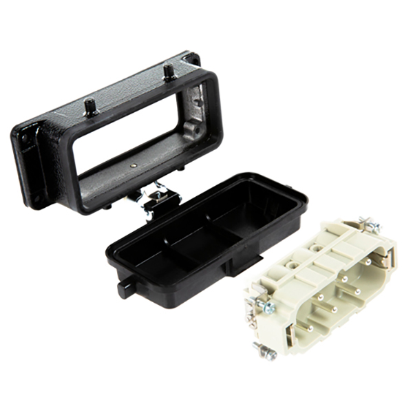 Embase mâle à 4 ergots latéraux et capot plastique HARTING noire