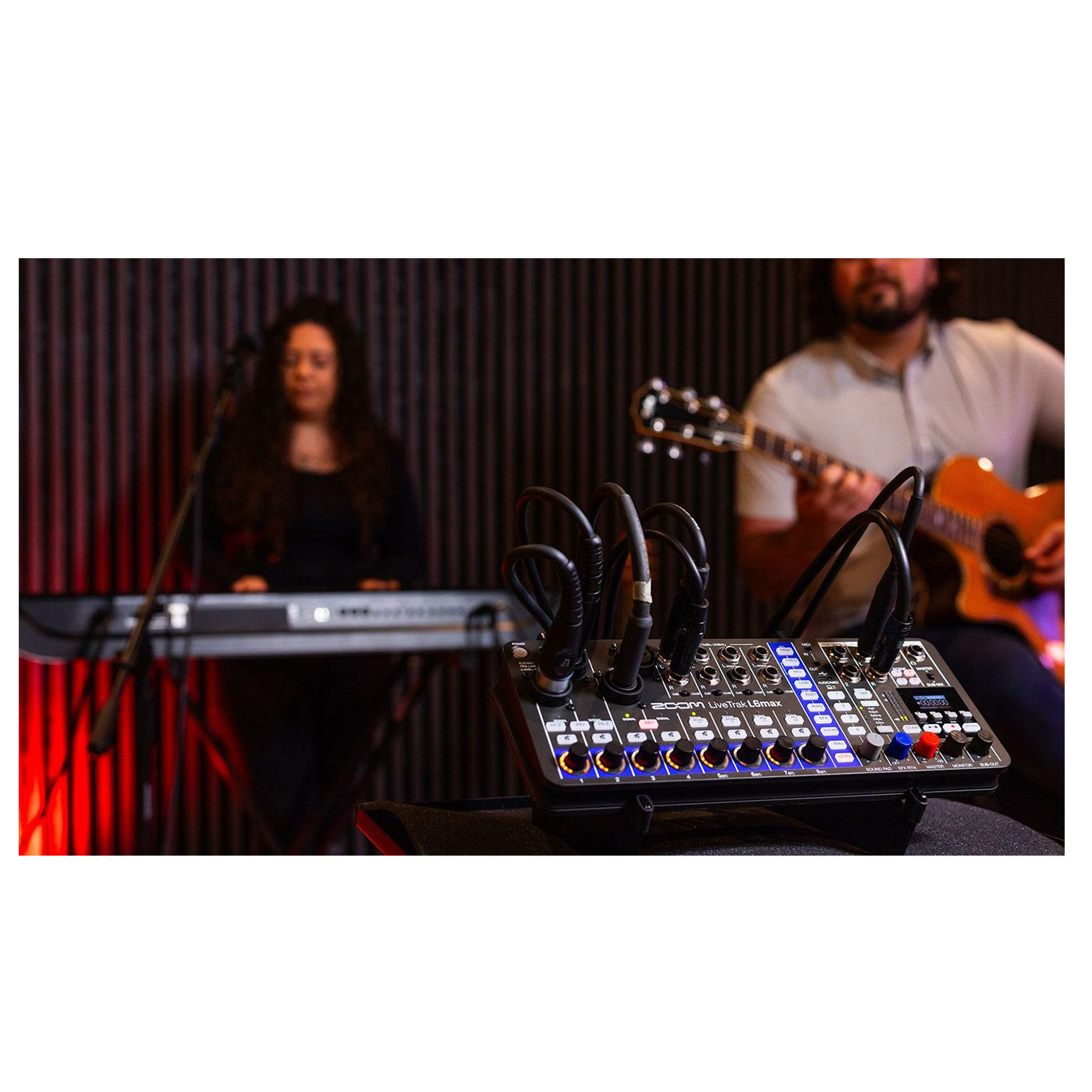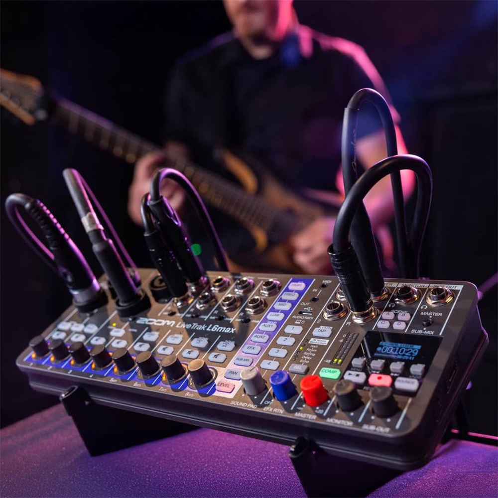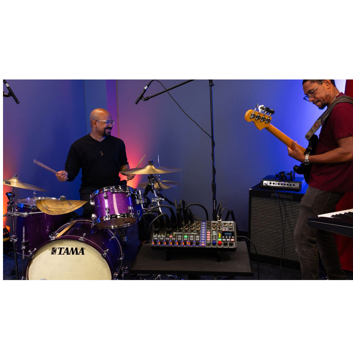 Alim 4 x AA ou USB-C 4 entrées mic/line sur XLR combo, 4 entrées stéréo line sur jack. 2 AUX, multieffet intégré, enregistreur multipistes intégré. Réduction du bruit assisté par IA. REC sur SDHC et SDXC.