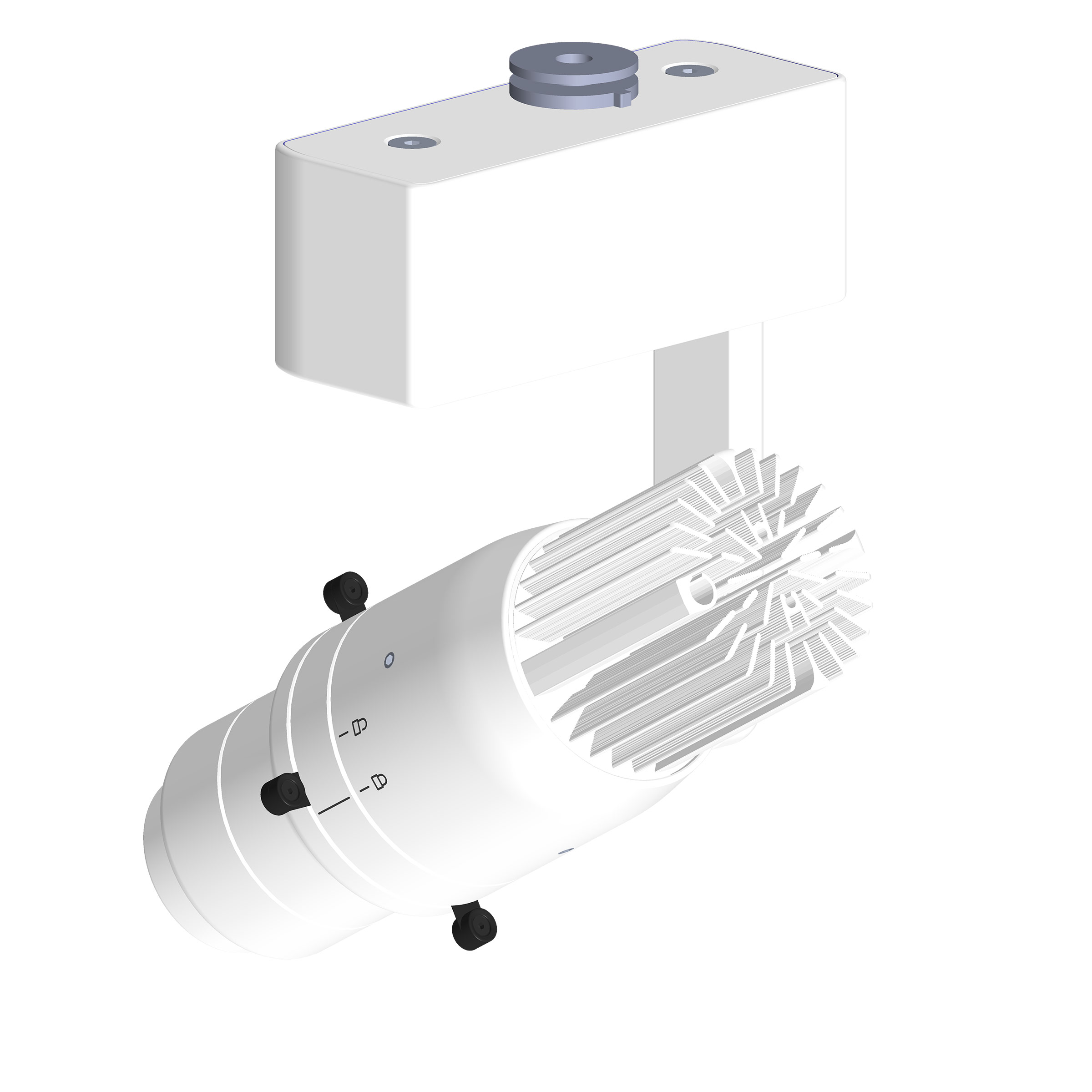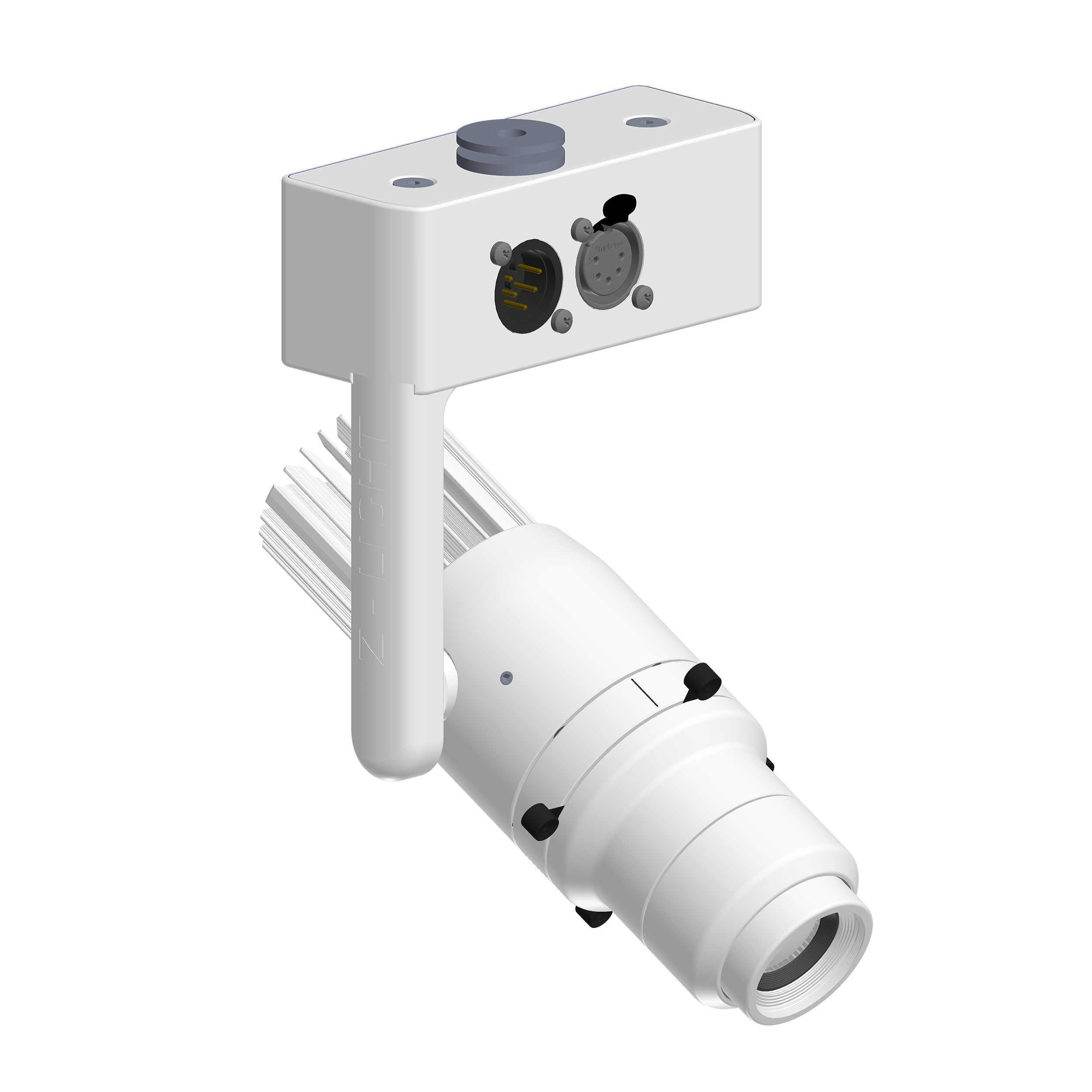 Blanc - Lyre Percée IRC =/>97 - Livré sans optique PC Mickey ou cadreur, mini découpe - Contrôle DMX RDM In/Out XLR 3 - Livré avec cordon monté sur presse étoupe non fiché
