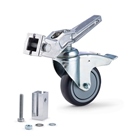 La jambe de mise à niveau permet un ajustement précis, facilitant l'installation sur des surfaces irrégulières. La colonne stabilisante, sécurisée par deux poignées de verrouillage en T, peut être abaissée pour créer un quatrième point de support, augmentant ainsi la stabilité du pied. Ce design prend en compte la nécessité de maintenir une base solide même dans des conditions de travail variées.