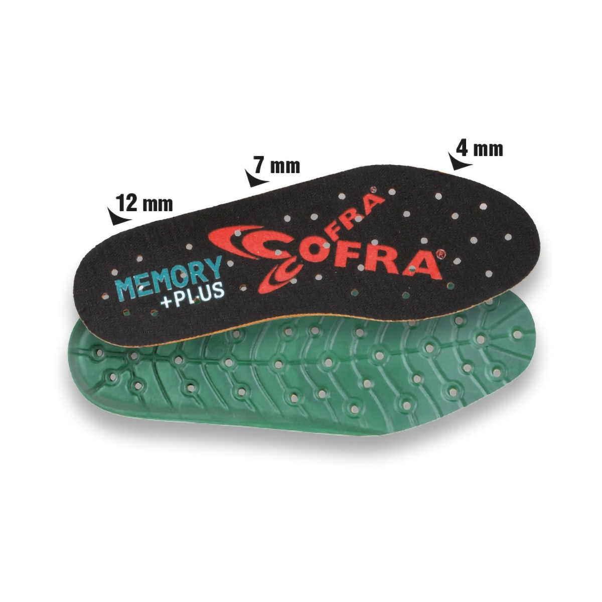 La semelle de rechange COFRA Memory Plus est conçue pour offrir un confort ergonomique optimal grâce à sa structure anatomique et préformée. Sa composition en polyuréthane parfumé haute densité assure un soutien élevé sur toute la surface de la plante du pied, garantissant ainsi une répartition uniforme des pressions exercées lors de la marche. De plus, la semelle est perforée et antistatique, ce qui contribue à une meilleure circulation de l'air et à la réduction des charges électrostatiques.