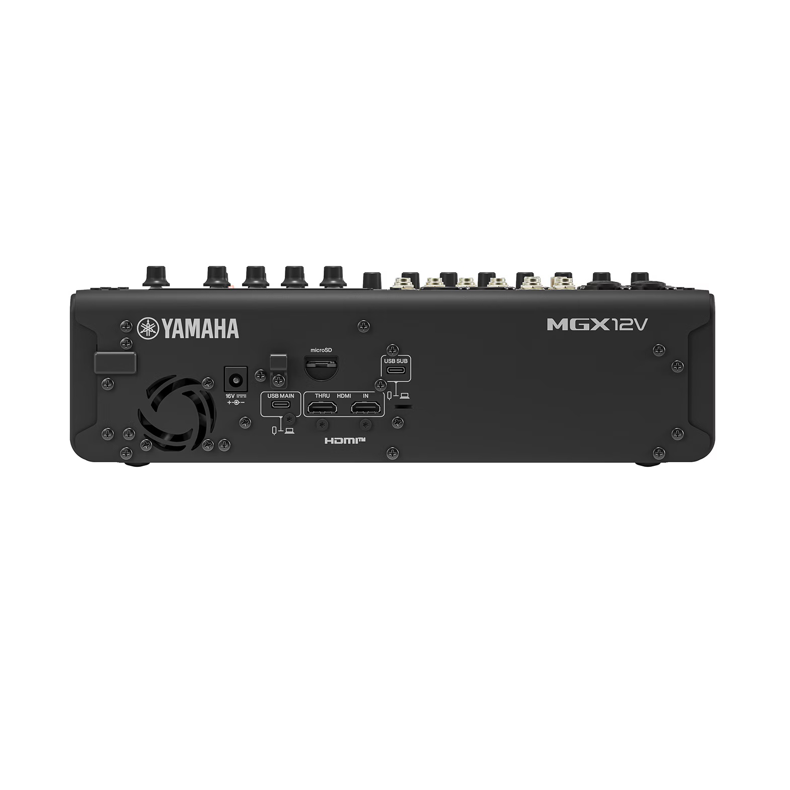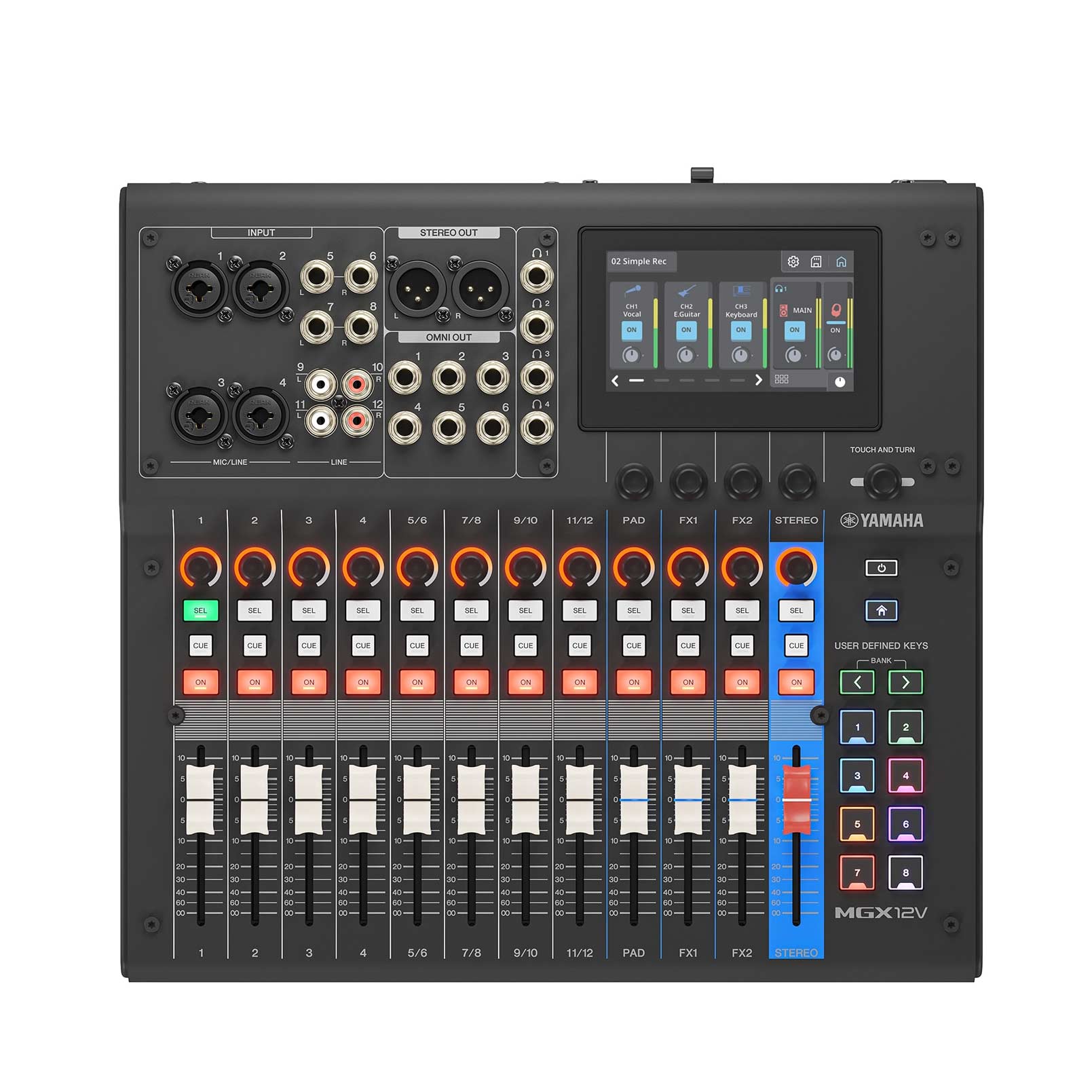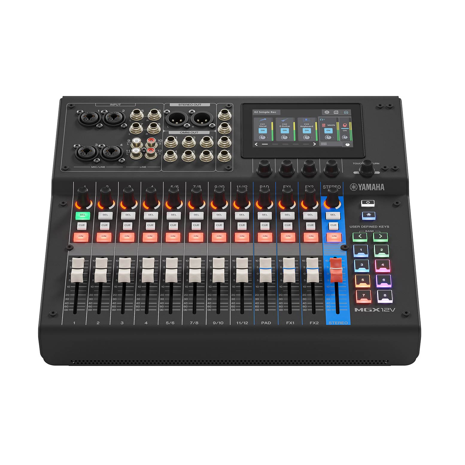 La Yamaha MGX12V est une console de mixage numérique conçue pour la création de contenu, le streaming vidéo et la production audio. Elle reprend une architecture 12 faders avec 4 entrées combo, un écran tactile 4,3 pouces, des encodeurs et un DSP complet. Elle se distingue par son interface HDMI-USB permettant la capture vidéo 4K en complément de l’audio haute qualité.