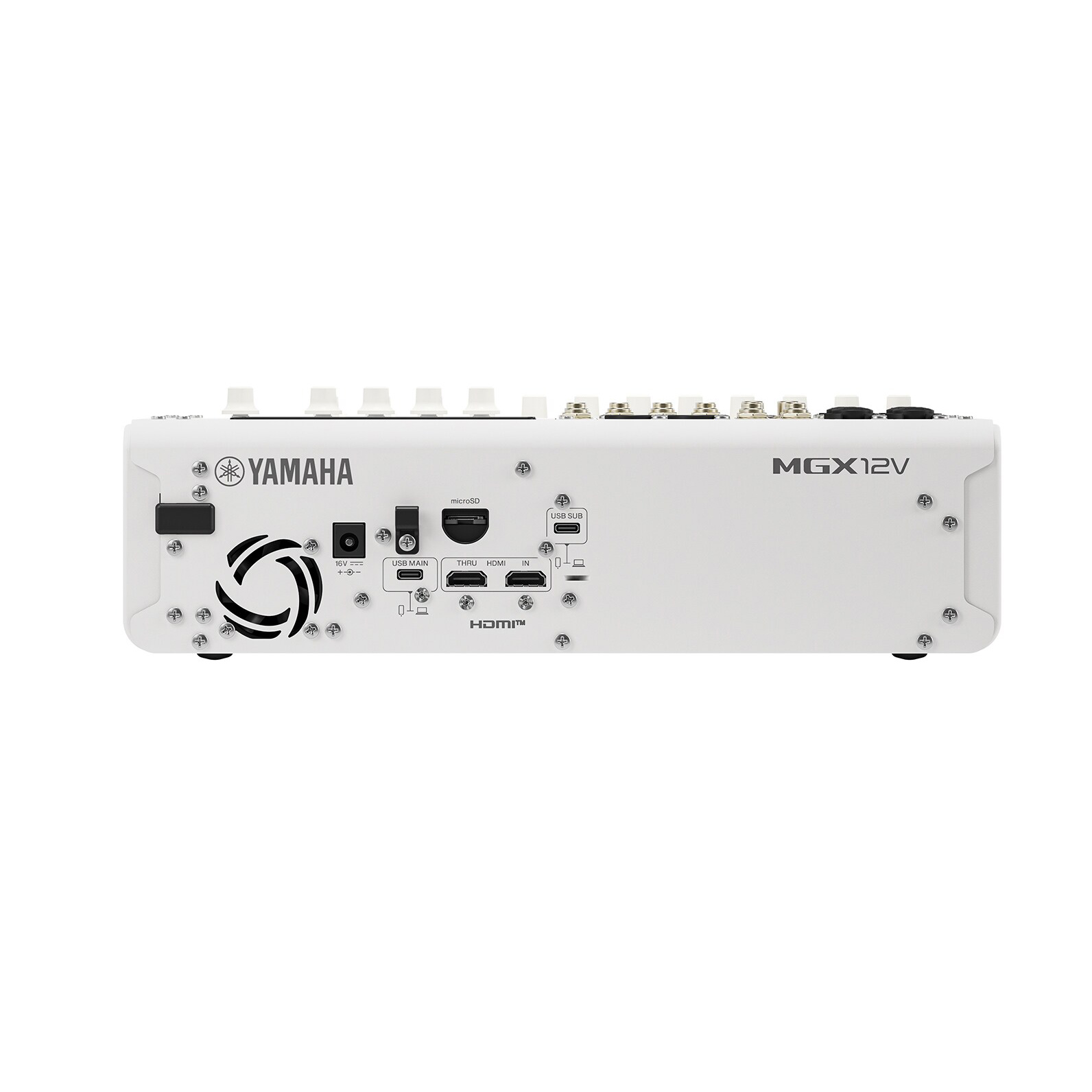 La Yamaha MGX12V est une console de mixage numérique conçue pour la création de contenu, le streaming vidéo et la production audio. Elle reprend une architecture 12 faders avec 4 entrées combo, un écran tactile 4,3 pouces, des encodeurs et un DSP complet. Elle se distingue par son interface HDMI-USB permettant la capture vidéo 4K en complément de l’audio haute qualité.