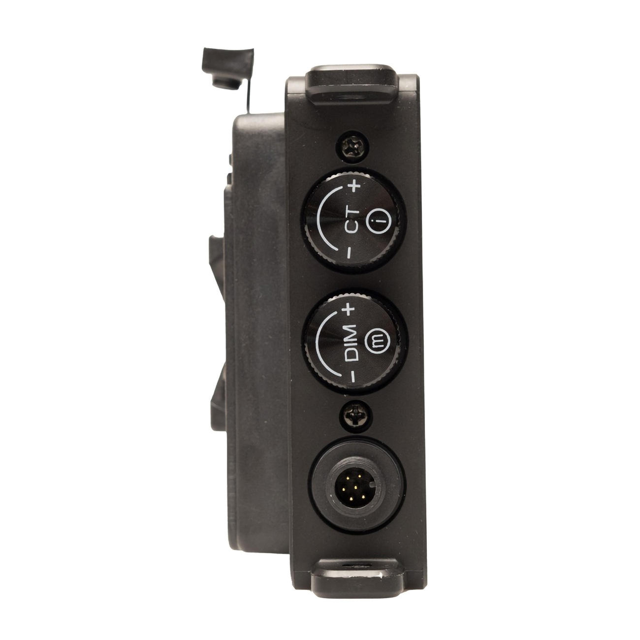 Le MM-DIM-LM est une unité de gradation et de contrôle pour panneaux Aladdin MOSAIC MINI (et compatibles BI-FLEX), équipée d’un écran LCD, de deux molettes de réglage et de menus complets pour ajuster intensité, température de couleur (CCT), teinte (Hue), effets et modes avec précision en continu de 1 à 100 %. Il se connecte au panneau LED via un connecteur dédié et peut être alimenté en AC ou DC, il intègre aussi le support DMX512 via câble Y (jack --> XLR) et des options sans fil (LumenRadio et Bluetooth) pour une intégration facile dans des réseaux d’éclairage complexes. Son design compact avec monture V-Mount permet une installation flexible en studio ou sur le terrain, et son refroidissement passif assure une fiabilité silencieuse lors d’une utilisation prolongée.