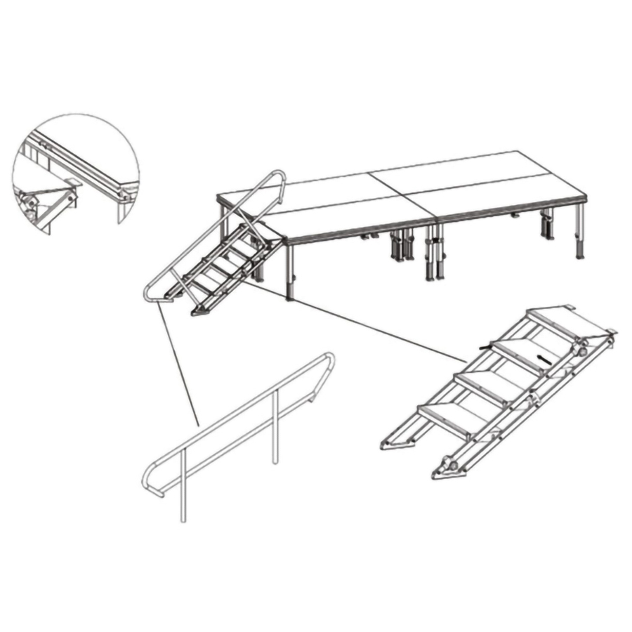 Adapté à un usage intérieur comme extérieur, cet escalier est simple à installer et à démonter, ce qui en fait un accessoire incontournable pour les prestataires techniques, régisseurs et organisateurs d’événements souhaitant un accès fiable et rapide à leurs scènes modulaires.