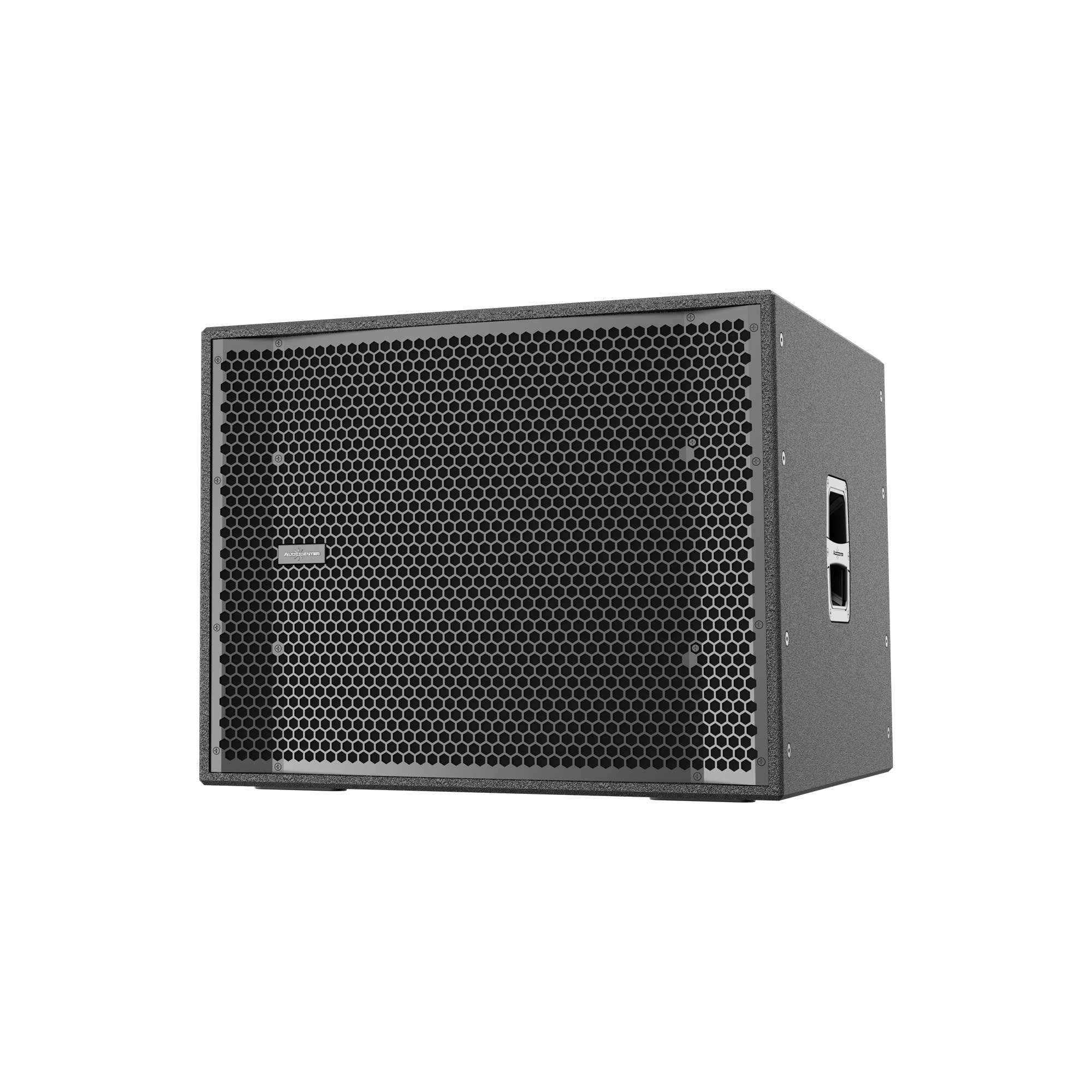 Conçu pour les applications nécessitant compacité et efficacité, le PRO-S5118A intègre un unique haut-parleur de 18 pouces à bobine 4 pouces, offrant une restitution précise dans la plage 30 Hz – 130 Hz. Son niveau SPL maximal atteint 135 dB en crête, alimenté par un amplificateur Classe D de 1500 W RMS et 3000 W crête. Il dispose de trois presets de filtrage passe-bas (80 Hz, 100 Hz, Cardioïde), accessibles depuis l’arrière. Le DSP interne fonctionne à une fréquence d’échantillonnage de 48 kHz pour un traitement précis et efficace du signal. En absence de signal, le système passe automatiquement en veille après 45 minutes. La structure du caisson est réalisée en contreplaqué de bouleau usiné CNC, recouvert d’un revêtement polyurée résistant. Le refroidissement s’effectue via ventilation assistée et convection. Il intègre deux poignées, une grille de protection en métal, une embase M20 et une connectique XLR complète. Alimentation universelle 100–240 V, consommation 149 W à 1/8 de la puissance nominale.