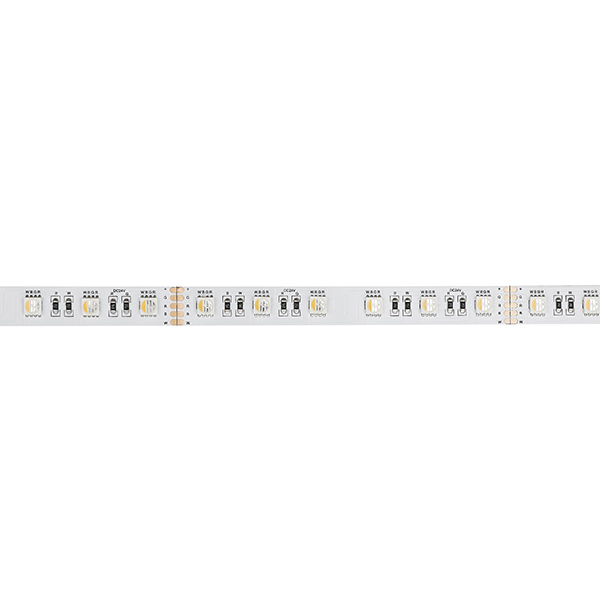 Ce modèle spécifique intègre 60 LED par mètre, offrant une luminosité totale de 4980 lumens par mètre. Les valeurs de luminosité sont réparties comme suit : rouge à 98 lm/m, vert à 362 lm/m, bleu à 90 lm/m, et blanc à 356 lm/m, permettant une personnalisation des couleurs via une interface de contrôle RGB. La série inclut également des options RGBW et RGBA.