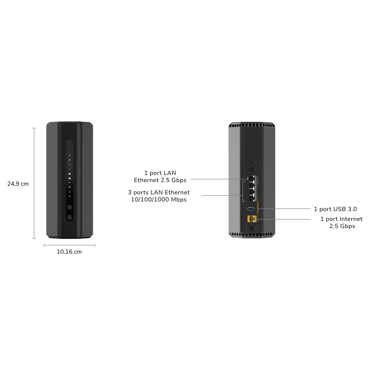 Switch Ethernet 3 ports Gigabit + 1 port 2,5G/s Ethernet et 1 port Internet 2,5Gb/s - Compatible Dual Band 2.4GHz : 600Mb/s et 5GHz : 1200Mb/s