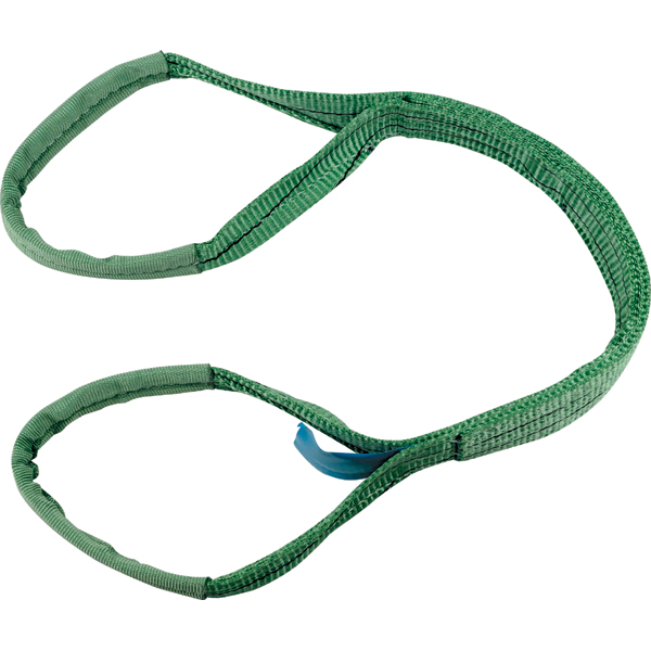'Elingue en sangle plate en polyester (PES), double épaisseur, conforme à la directive Machines 2006/42/CE et à la norme EN 1492-1. Coefficient de sécurité de 7:1.