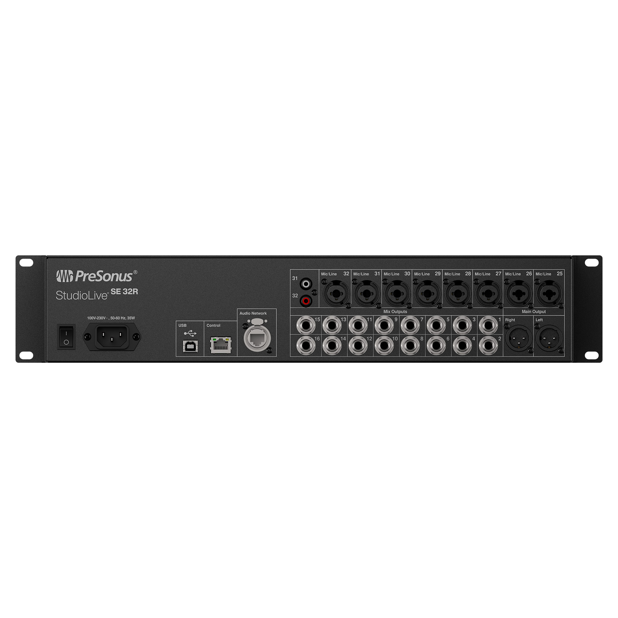 Le mixeur numérique rackable PreSonus StudioLive SE 32R est conçu pour le mixage audio professionnel en live, en installation fixe ou en régie déportée. Grâce à son traitement numérique 24 bits et à sa latence système de 1,9 ms, il garantit une restitution sonore précise et une grande réactivité, même dans les configurations les plus exigeantes.