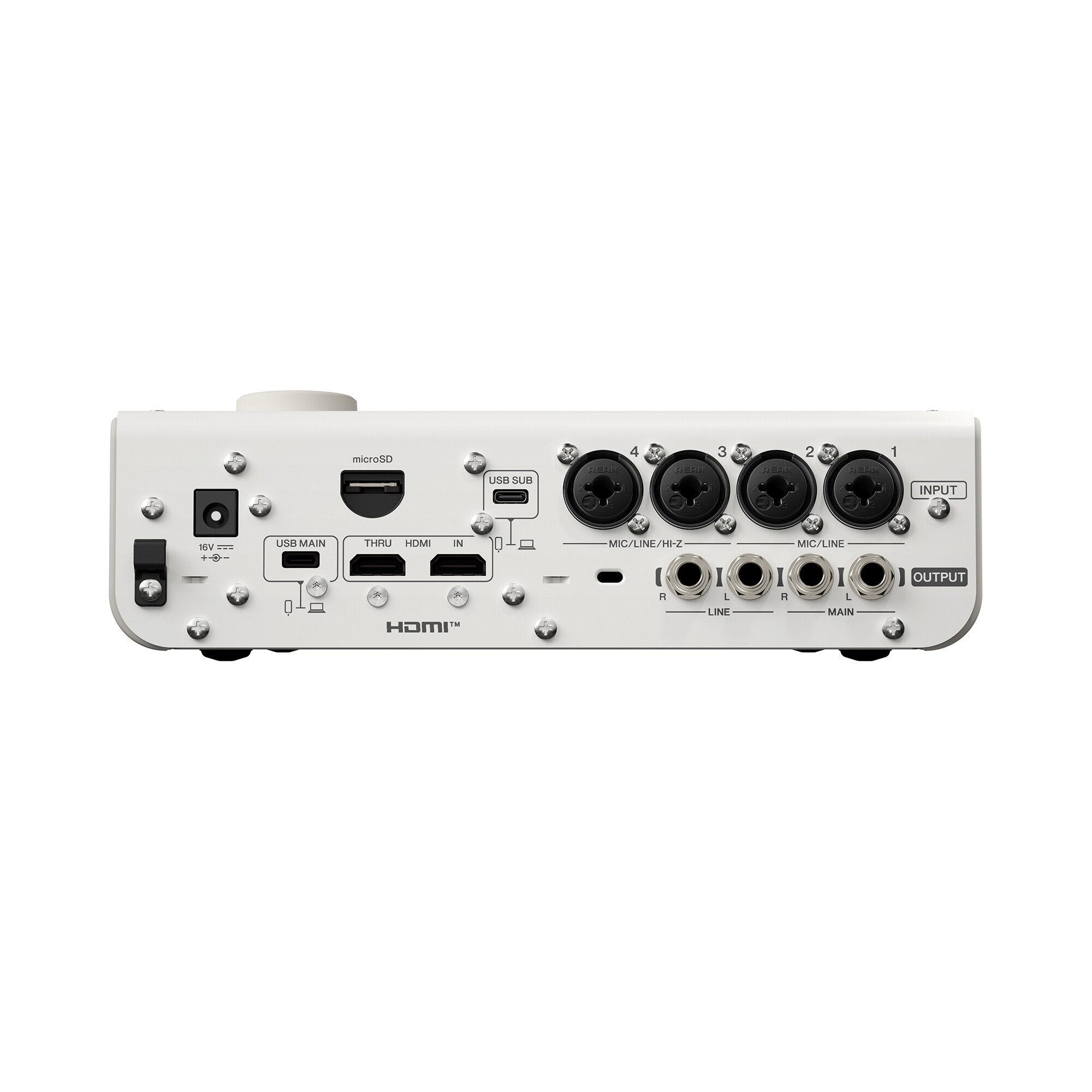 La Yamaha URX44V est une interface audio vidéo USB-C conçue pour la création de contenu avancée et le streaming professionnel. Elle intègre une interface HDMI-USB permettant la capture vidéo 4K avec pass-through, tout en offrant les performances audio de la gamme avec 4 entrées combo, 32 bits / 192 kHz et DSP intégré. Son écran tactile, ses encodeurs et sa compatibilité OBS et Stream Deck assurent un pilotage complet du flux audio et vidéo.