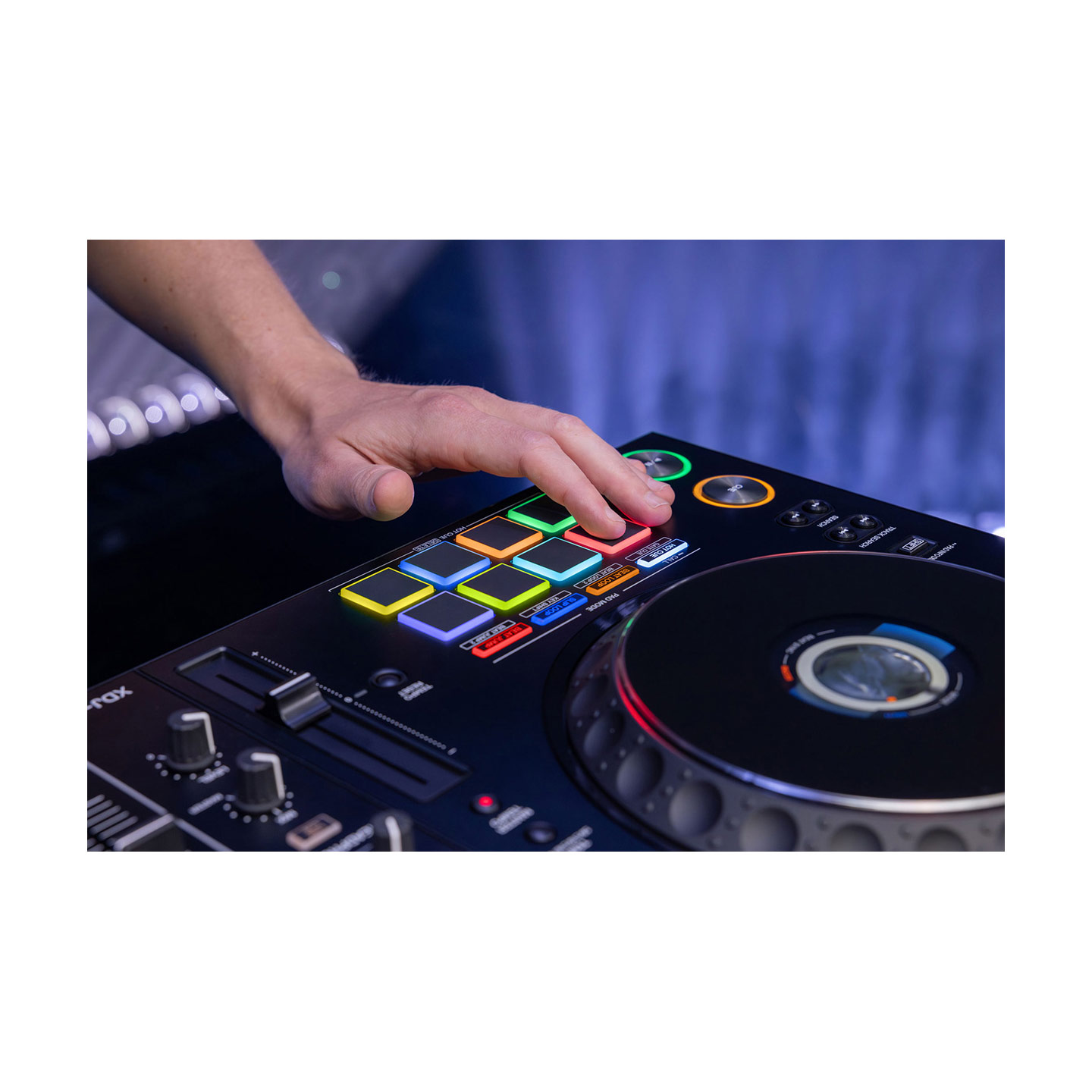 Le Alphatheta XDJ est un système DJ tout-en-un les performances professionnelles, offrant une configuration à 4 platines qui imite la disposition standard des clubs. Ce contrôleur est équipé de jog wheels de taille standard, similaires à celles du modèle CDJ-3000, permettant un pitch bending et un scratch fluides. La section mixeur est inspirée de la disposition intuitive du DJM-A9, facilitant l'accès aux commandes essentielles pour maximiser la jouabilité lors des performances. Les boutons dédiés permettent d'appliquer des effets Beat FX, ce qui enrichit l'expérience musicale.