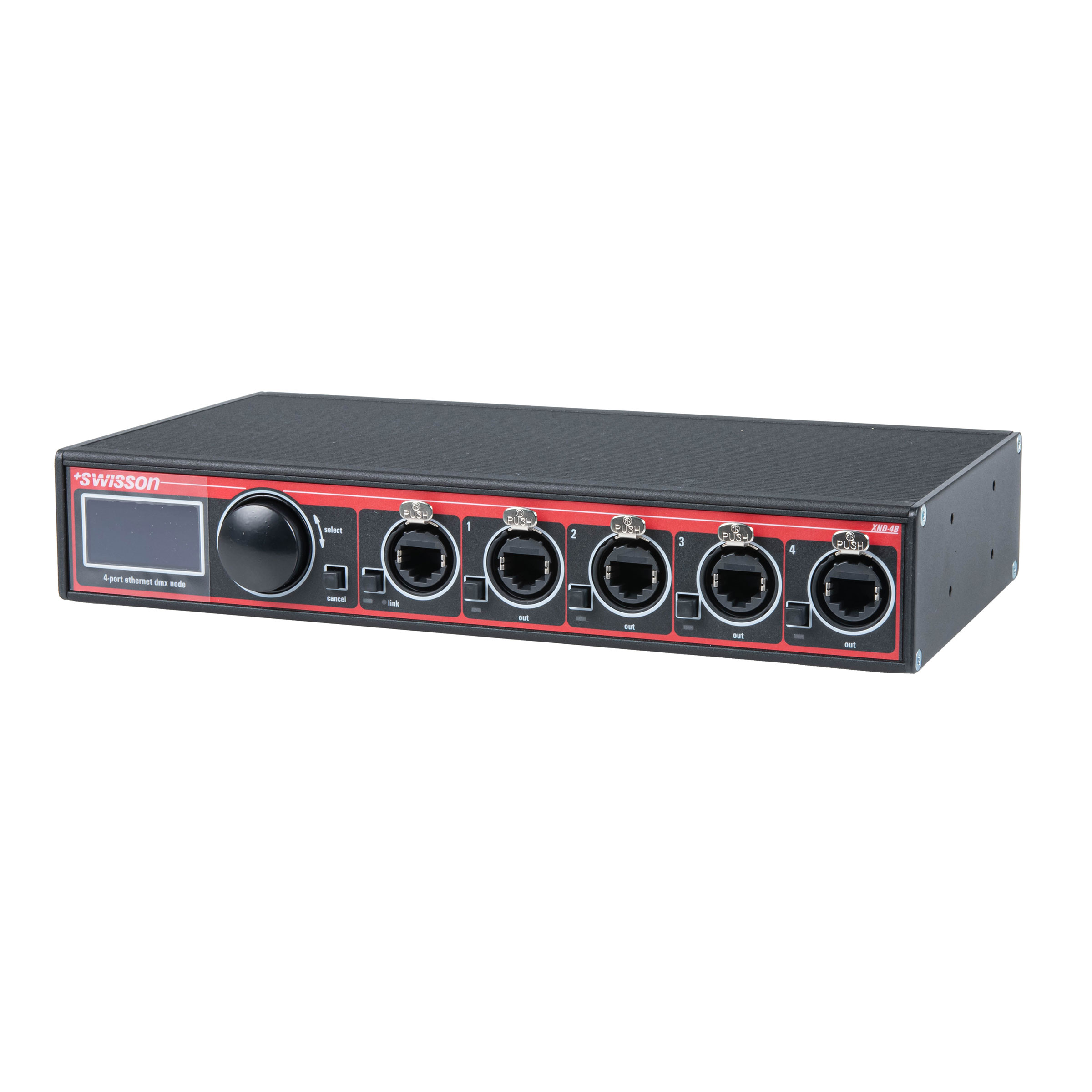 En résumé, le Node Ethernet/DMX 4 de Swisson est un dispositif essentiel pour toute installation d'éclairage nécessitant une gestion efficace des univers DMX via Ethernet. Sa capacité à fonctionner dans des environnements variés, combinée à sa facilité d'utilisation et à son intégration avec des systèmes existants, en fait un choix judicieux pour les professionnels de l'éclairage.